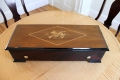 Open the locking lid to expose the winding handle and operating levers. The movement itself remains protected from dust behind a second lid with large glass panel. Normally the movement is played with this second lid closed; it sounds best played this way. Open the second lid to watch the movement up close.