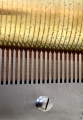 The cylinder is the mind of a musical box. The Comb is its voice. Made in a single piece of tool steel, our comb has 92 individually shaped and tuned teeth. No other music box maker in the world uses such a large comb. The range is c2 to c7: five octaves! The comb can play as low as a bassoon and as high as a piccolo. This is what allows a Herz musical box to play orchestral arrangements of works, interweaving many distinct voices.