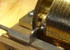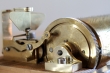 The governor controls the speed of playing. Riding against a synthetic sapphire jewel, the “endless screw” turns at 2000 rpm. The whirring fan blades are what keeps the power of the spring motor in check, allowing the cylinder to turn once a minute.